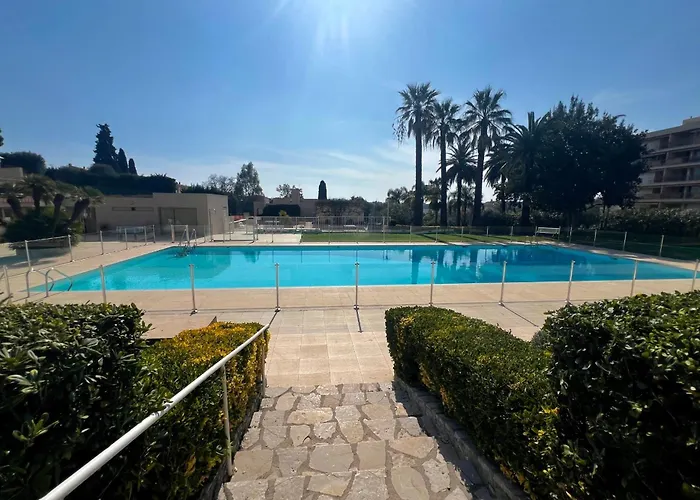 Juan Les Pins - 4 People - Swimming Pool - Tennis lägenhet, som erbjuder en säsongsöppen utomhusbassäng, ligger intill Partouche Casino. Boendet omfattar 1 sovrum, 1 badrum och ett komplett kök.